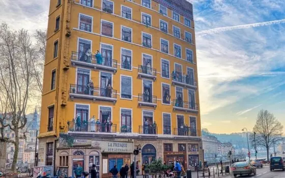 Halten Sie an diesem riesigen Wandgemälde, das 30 bekannte Persönlichkeiten aus Lyon zeigt – Kunst und Geschichte vereint auf einer Fassade.
