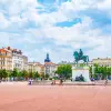 Radeln Sie über einen der größten Plätze Europas, dominiert von der Reiterstatue Ludwigs XIV. – ein zentraler Treffpunkt des Stadtlebens.